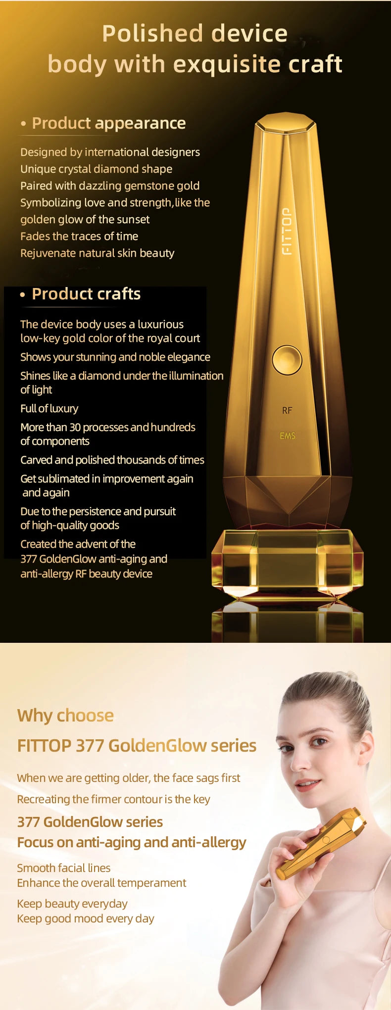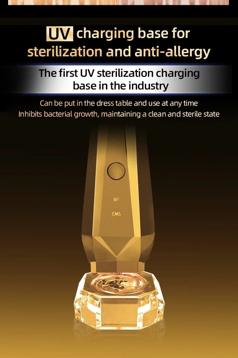 💫 Or 24K hypoallergénique–🔥 RF 2 MHz–🔬 EMS micro-impulsions–❄️ Refroidissement express